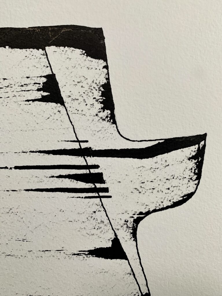 Sans titre 2026 Format 24x32 Support Papier 400g Technique Encre acrylique Étude de forme pour la série « ToolZ »